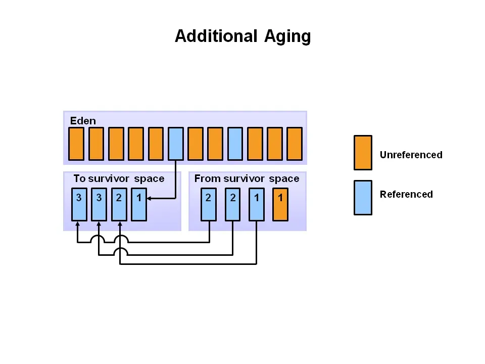3. Once the counter reaches a certain threshold the object is moved from young generation to old generation or Tenured Generation.